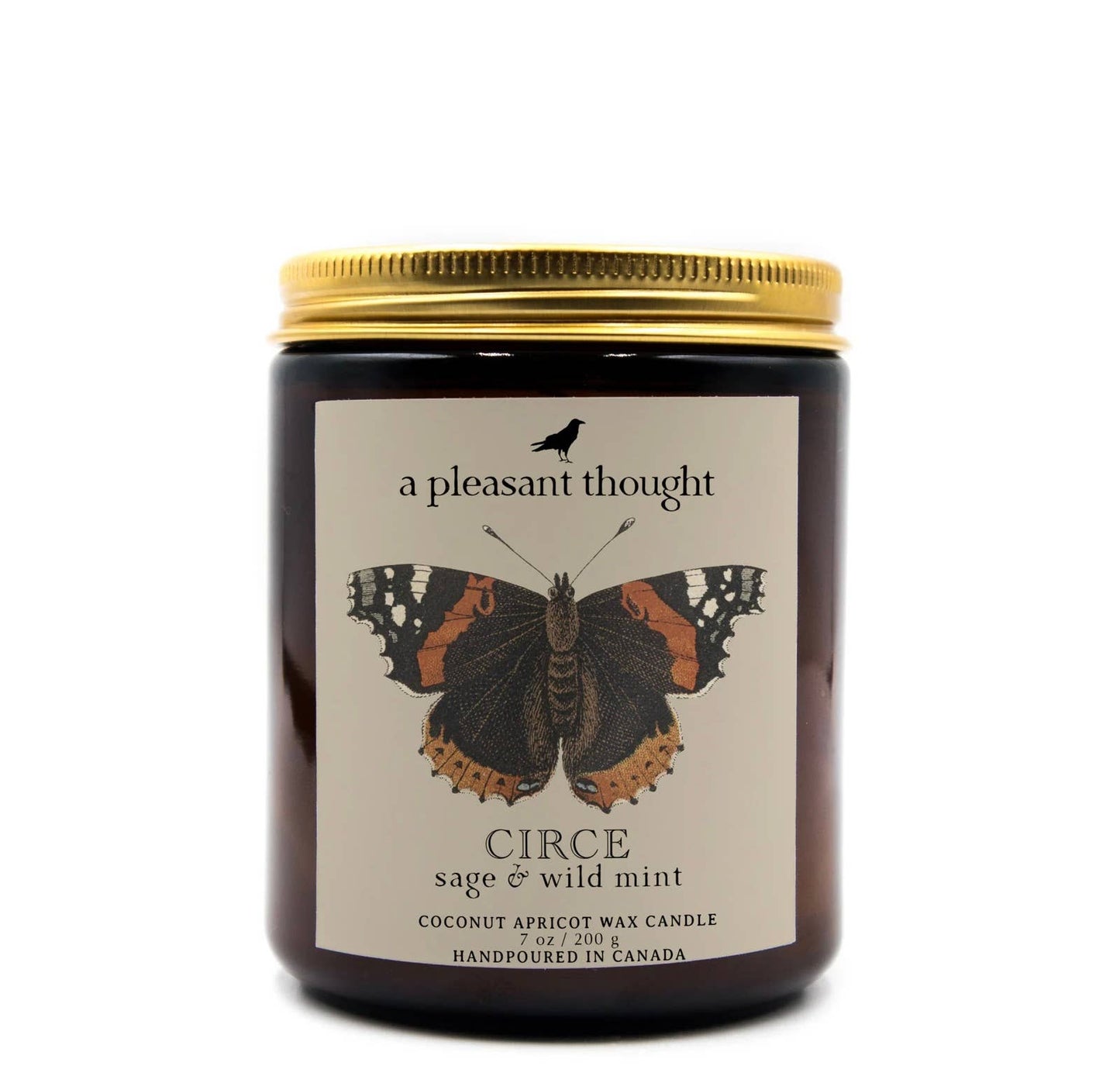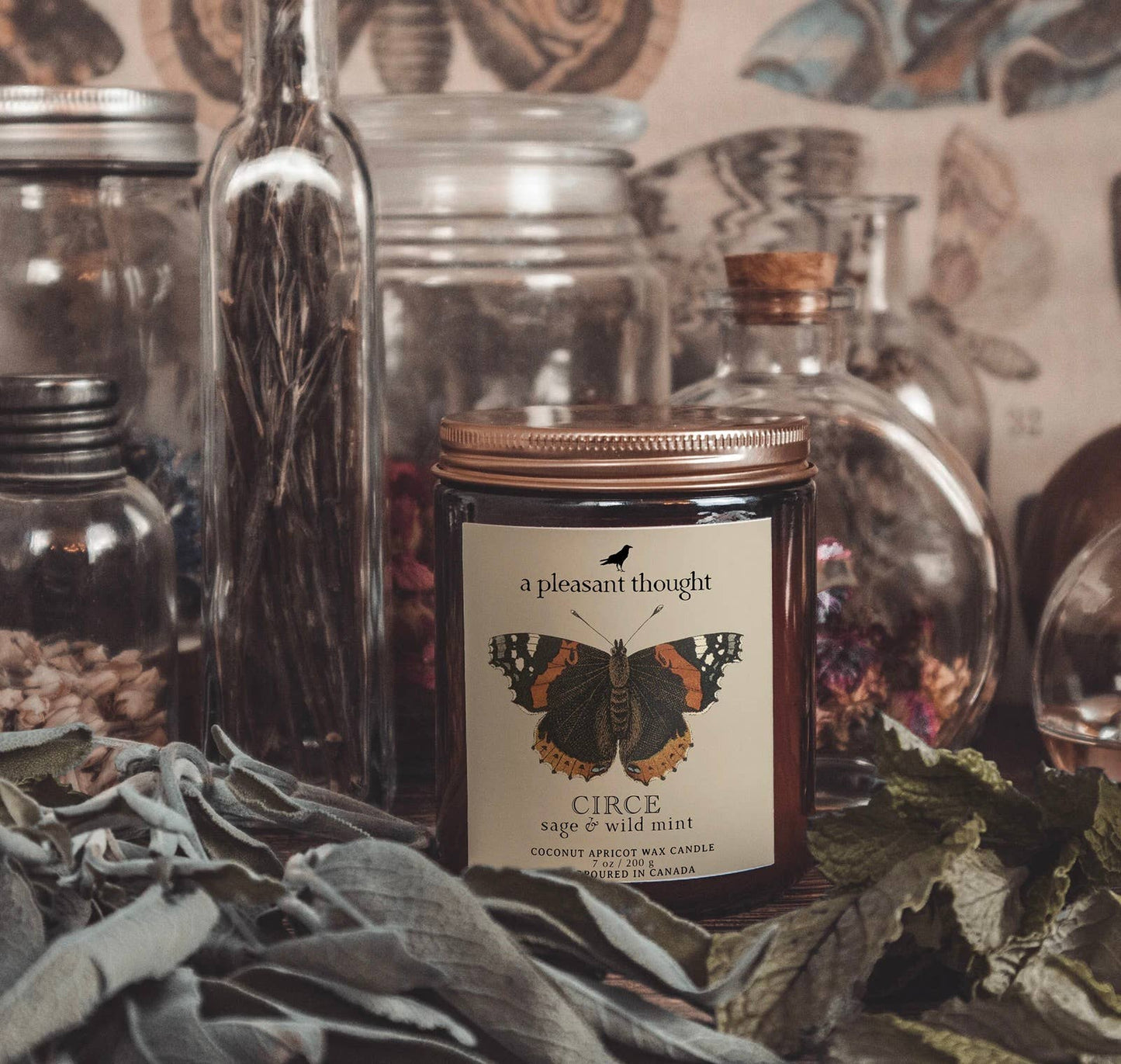 Fresh and herbaceous with a soft woodsy finish. Enjoy the cleansing and tranquil ambiance of Circe, our sage and wild mint-scented butterfly candle.