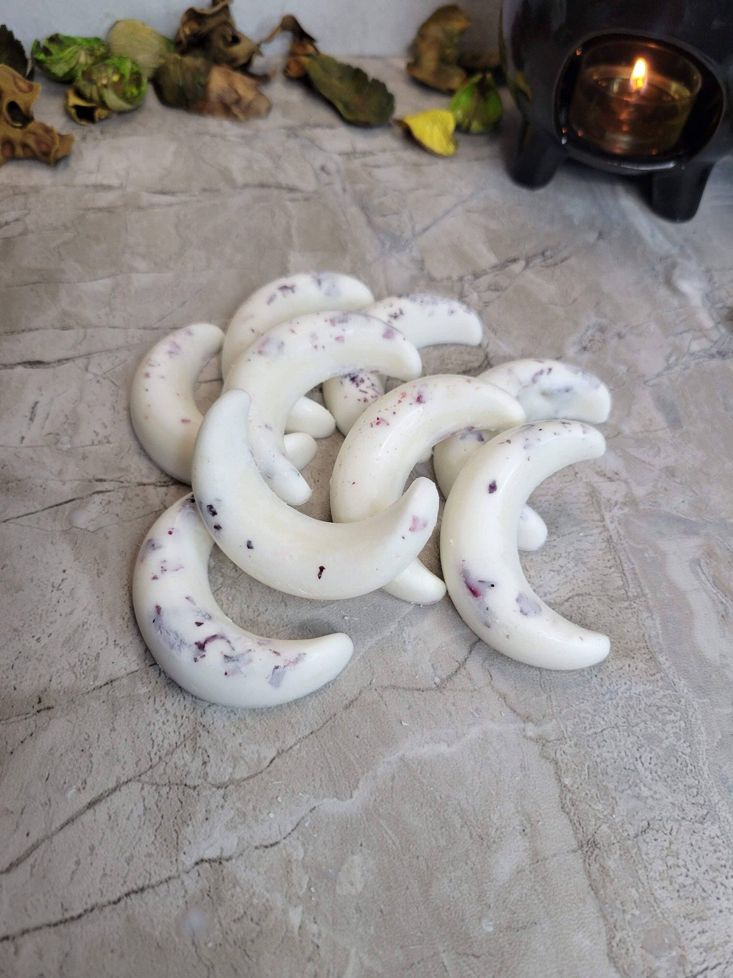 Crescent Moon wax melts with Flowers and Herbs, Ritual Melts