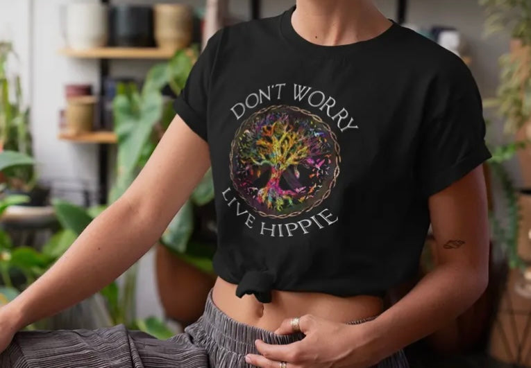 Get ready to live your best hippy life with our Don't Worry Live Hippy Tee Shirt! Perfect for plus size individuals up to 3xl, this tee shirt is all you need to spread some peace, love, and happiness. Embrace your hippy side and rock this tee in style.