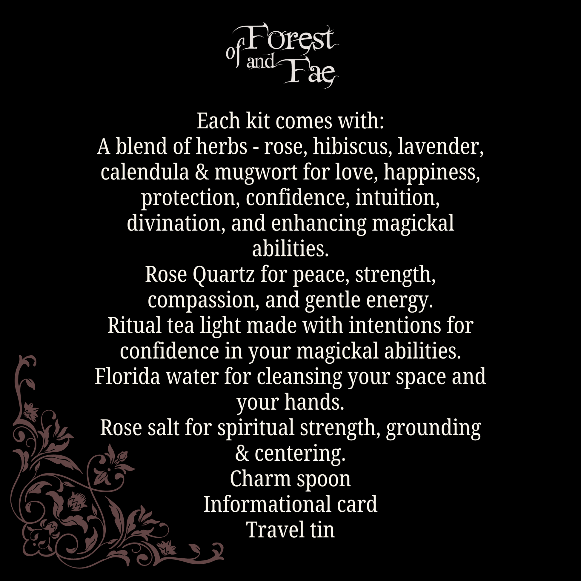 Blend of herbs - rose, hibiscus, lavender, calendula & mugwort for love, happiness, protection, confidence, intuition, divination, and enhancing magickal abilities.