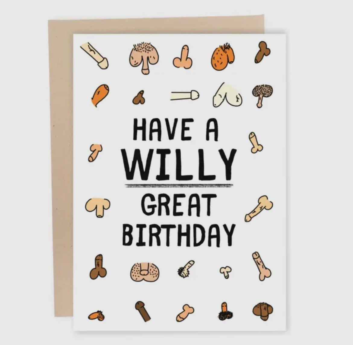 Get ready for a willy-great birthday with this greeting card! The inside is blank for your own special message.