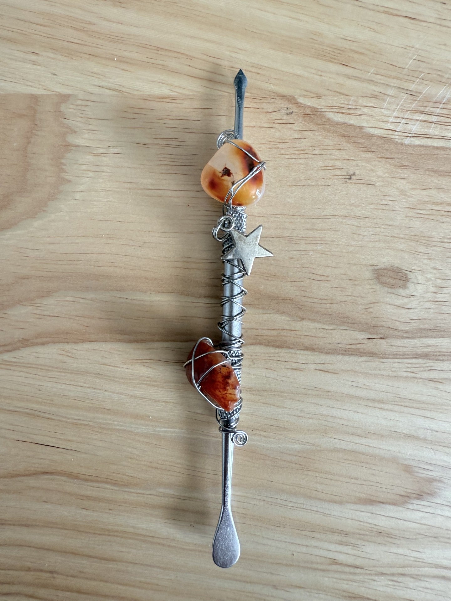 Experience the luxurious touch of our Hand Beaded Silver Dabber, adorned with stunning Carnelian Stone Accents and a silver star charm. This exquisite piece measures 4 1/2 inches and will elevate your dabbing experience to new heights.