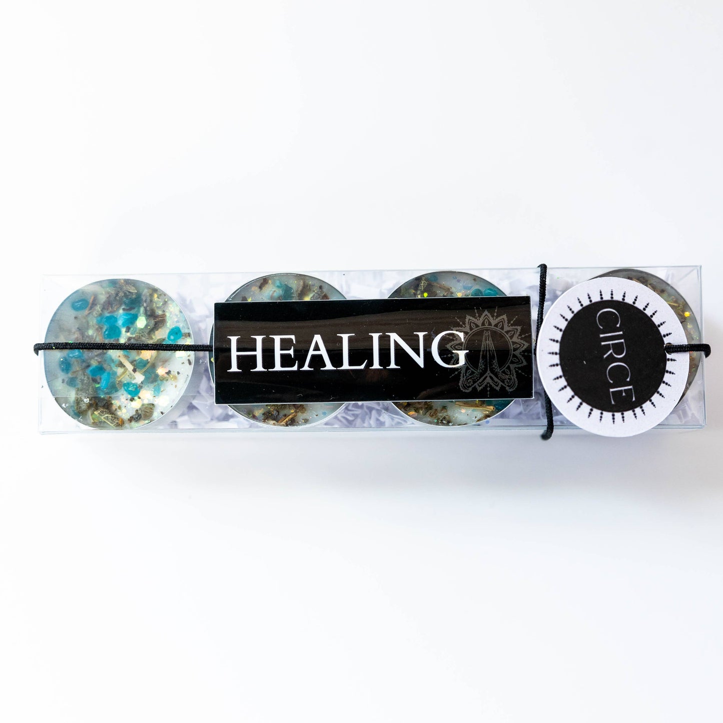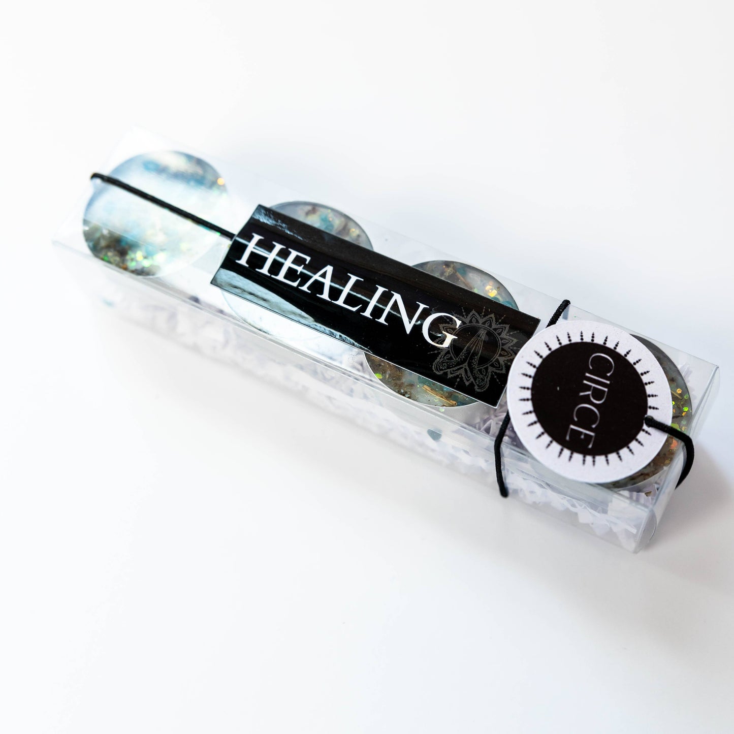 Introducing the Healing Spell Candle: a quartet of tealights devoted to nurturing mind, body, and soul. Imbued with our special spell oil, genuine crystals, and therapeutic herbs, each candle emanates Reiki energy, creating a sanctuary of healing. Beyond crystal candles, these are intention candles, crafted to kindle inner peace, restoration, and holistic harmony in your sacred spaces.