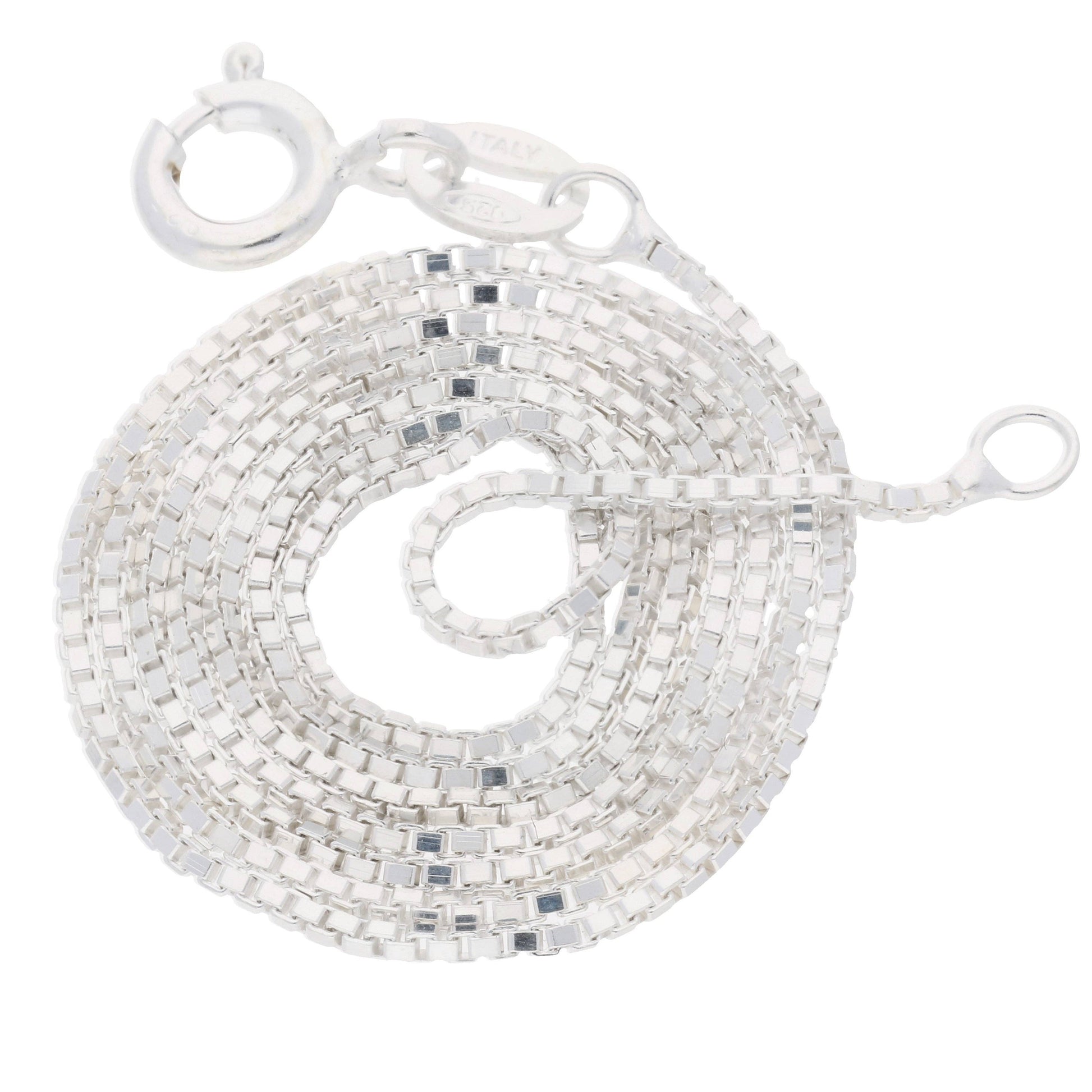 Dress up any outfit with Italian flair! This delicate 1mm sterling silver box link chain necklace is made in Italy and features a secure spring ring clasp. Plus, it's nickel-free and marked for authenticity. Add a touch of elegance and quality to your jewelry collection.