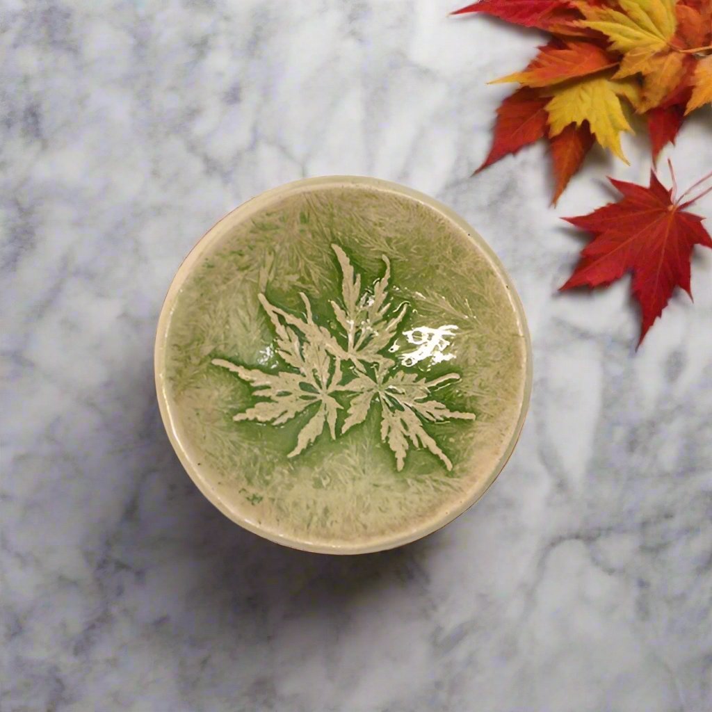 Japanese Maple Green Pottery Bowl