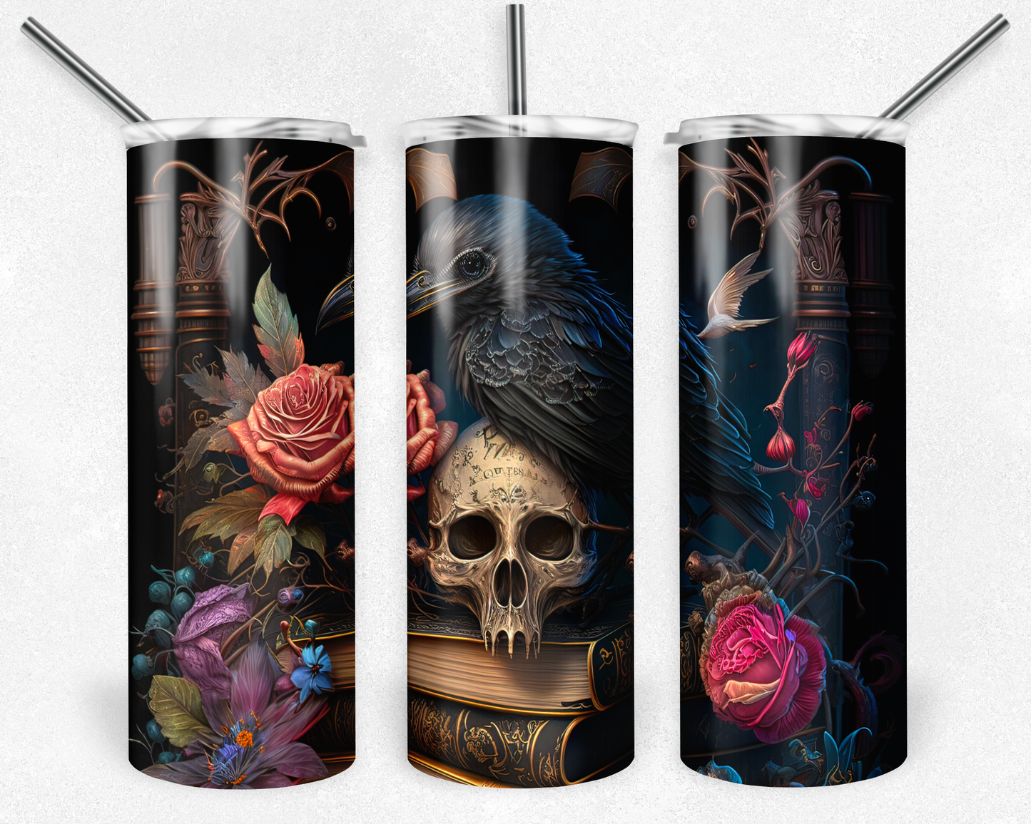 Magical Raven, Witchy Books and Gothic 20oz Skinny Tumbler