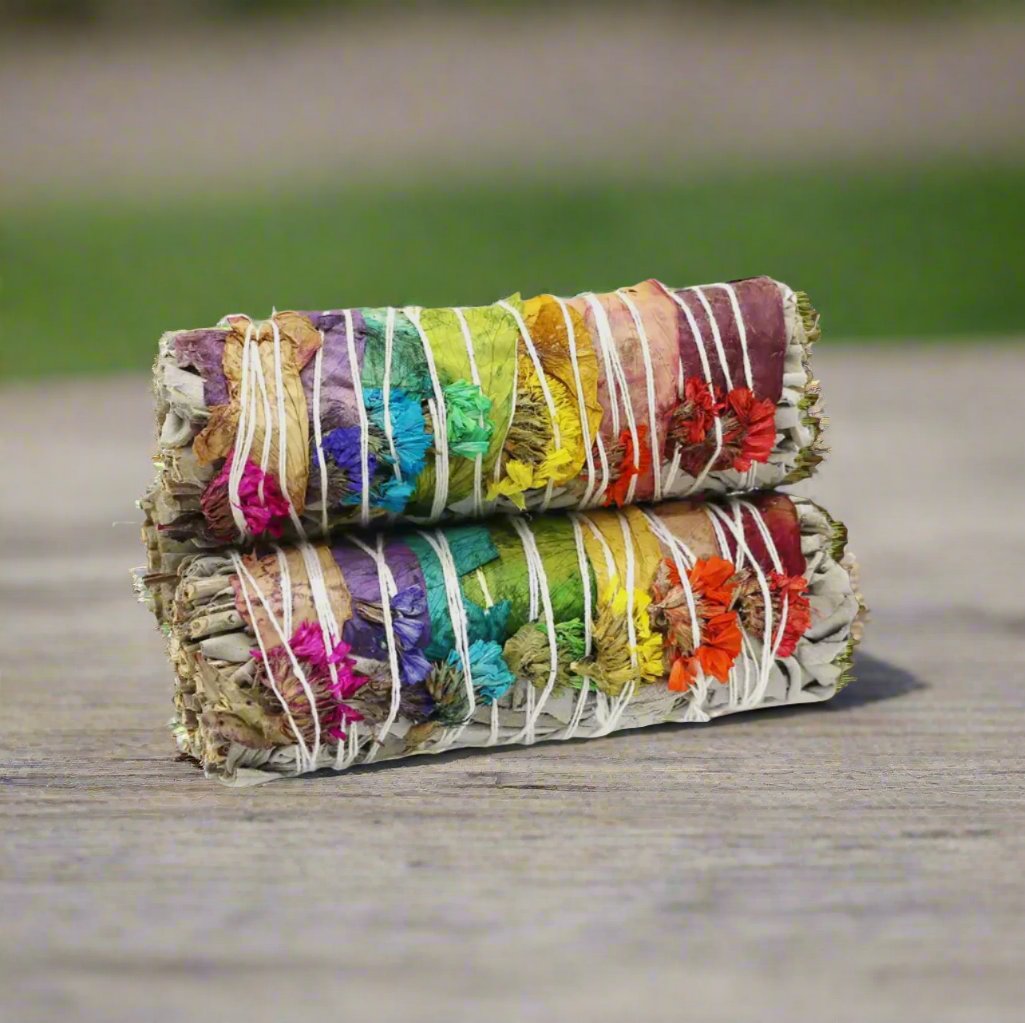 Elevate your spiritual journey with our 7 Chakras Sage Stick. Harness the ancient power of sage and align your Chakras for balance, harmony and inner peace. Perfect for meditation and cleansing your space. Invite positive energy into your life with this uplifting and healing tool.