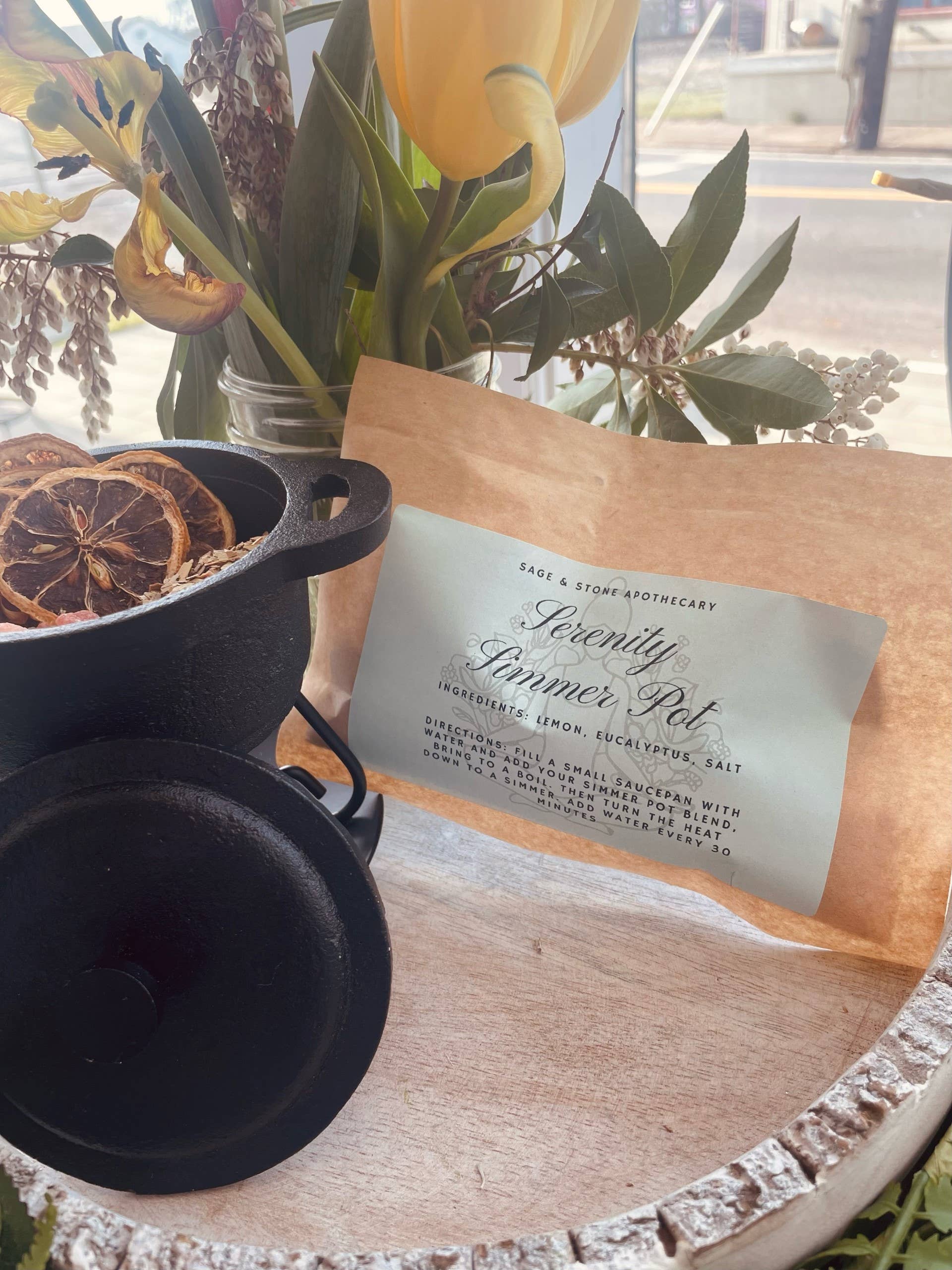 Experience a serene atmosphere with our Serenity Simmer Pot blend. Combining natural ingredients, our blend creates a calming and soothing aroma, perfect for unwinding after a long day. Let the power of nature bring peace and tranquility into your home.