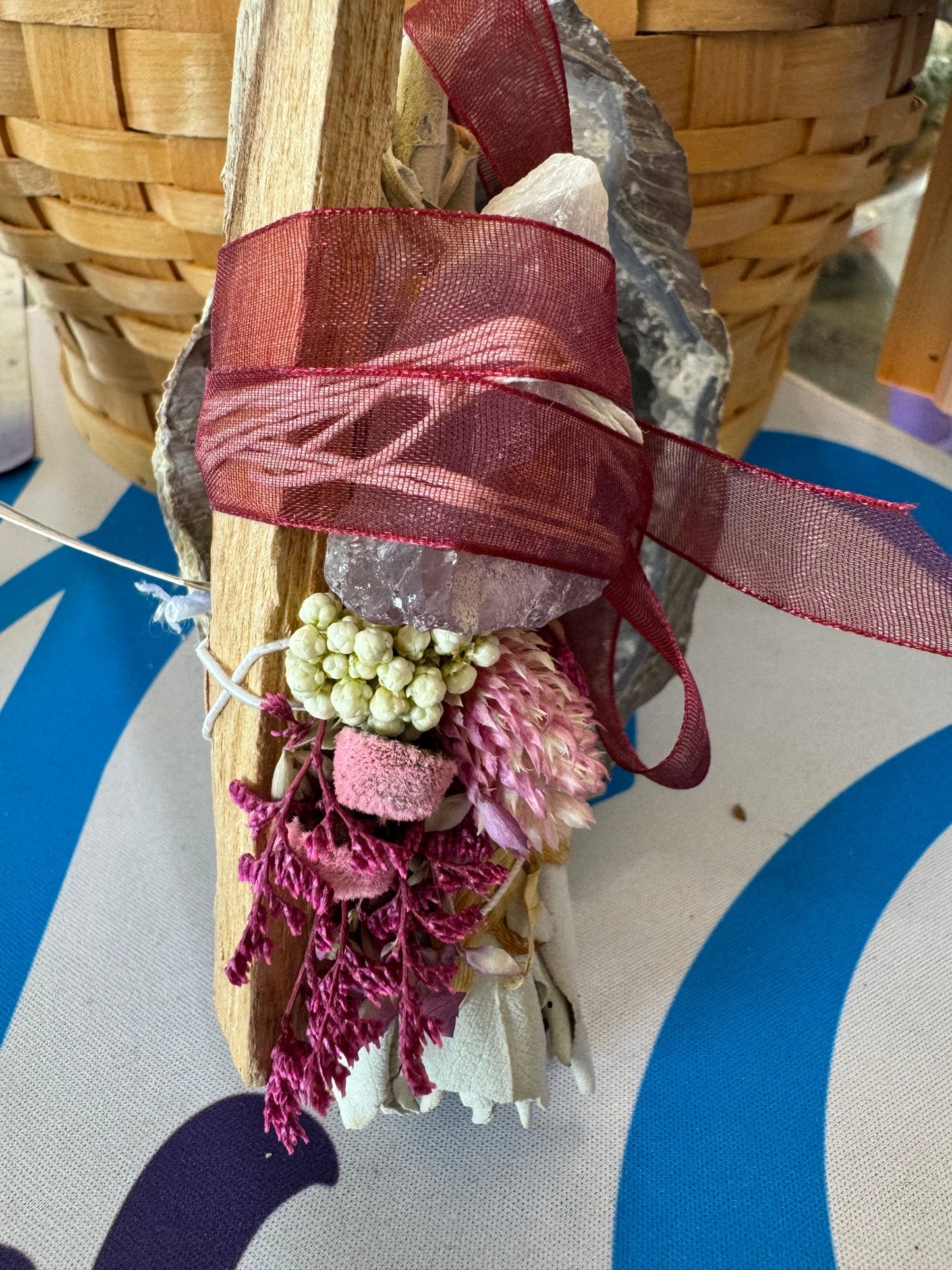 Transform any space into a sacred sanctuary with our Sage W/ Sunflowers, Palo Santo, & Amethyst Smudge Kit. Our kit includes everything you need to cleanse and purify your surroundings, promoting positive energy and peace. Elevate your daily rituals with this powerful and inspiring smudge kit.