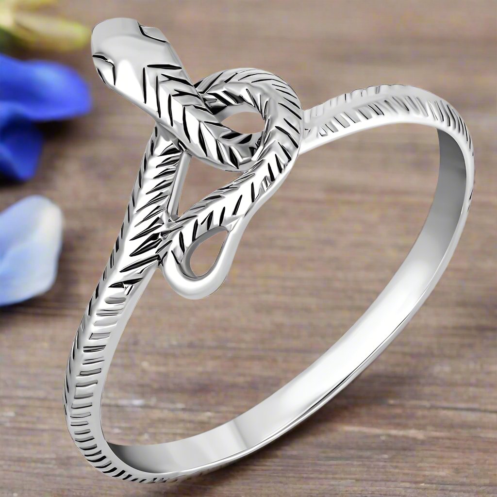 Elevate your style with our exquisite Snake, Sterling Silver Ring available in sizes 5-10! Experience the allure of this stunning piece that will make a bold statement and add a touch of luxury to any outfit.