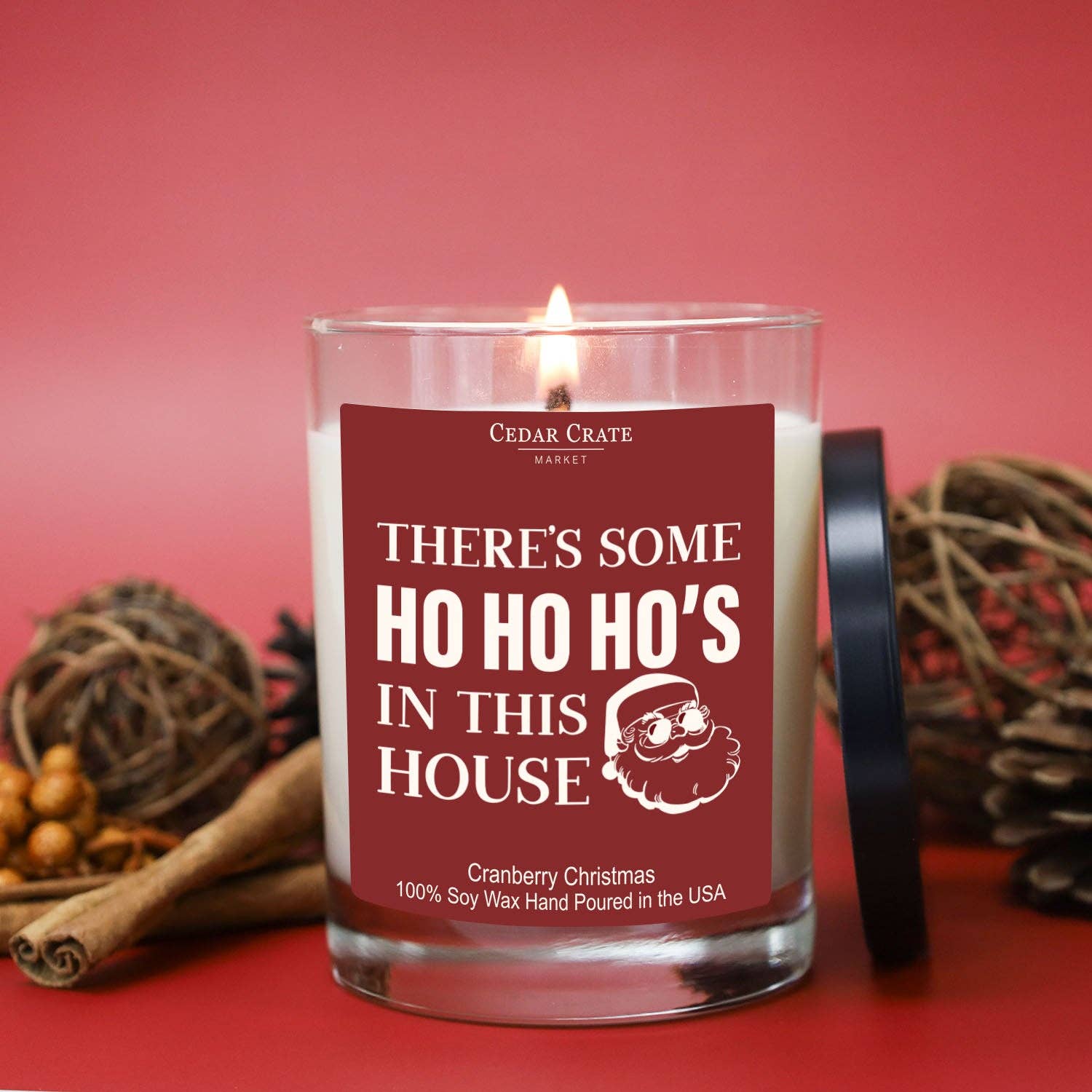 There's Some HO HO HO's In This House SCENT: #16 Cranberry Christmas. Fresh and fragrant cranberry are combined with notes of green grass, citrus, violet, musk, and sandalwood for an invigorating scent. CANDLE INFO: Size: 13.5 oz Jar | 3.5 x 3.5 x 4"" 60+ Hours 100% Soy Wax, Essential and Premium Fragrance Oils, Cotton Wick, Reusable Jar. Phthalate Free, Non-Toxic, Cruelty Free, Vegan, Non-GMO. Hand Poured in Minnetonka, MN, Made in USA Unique Gifts Like Sassy Candles, Funny Candles With Funny Quotes and Cool Candles With Unique Designs. Novelty Gifts Are Perfect Hostess Gift, Girlfriend Gift, Bridal Gift, Nurse Gift, Teacher Gift, Mom Gift, Christmas Gift, Birthday Gift, Sentimental Gift, Romantic Gift, New Home Gift, Thank You Gift, Valentine Gift or Mother’s Day.