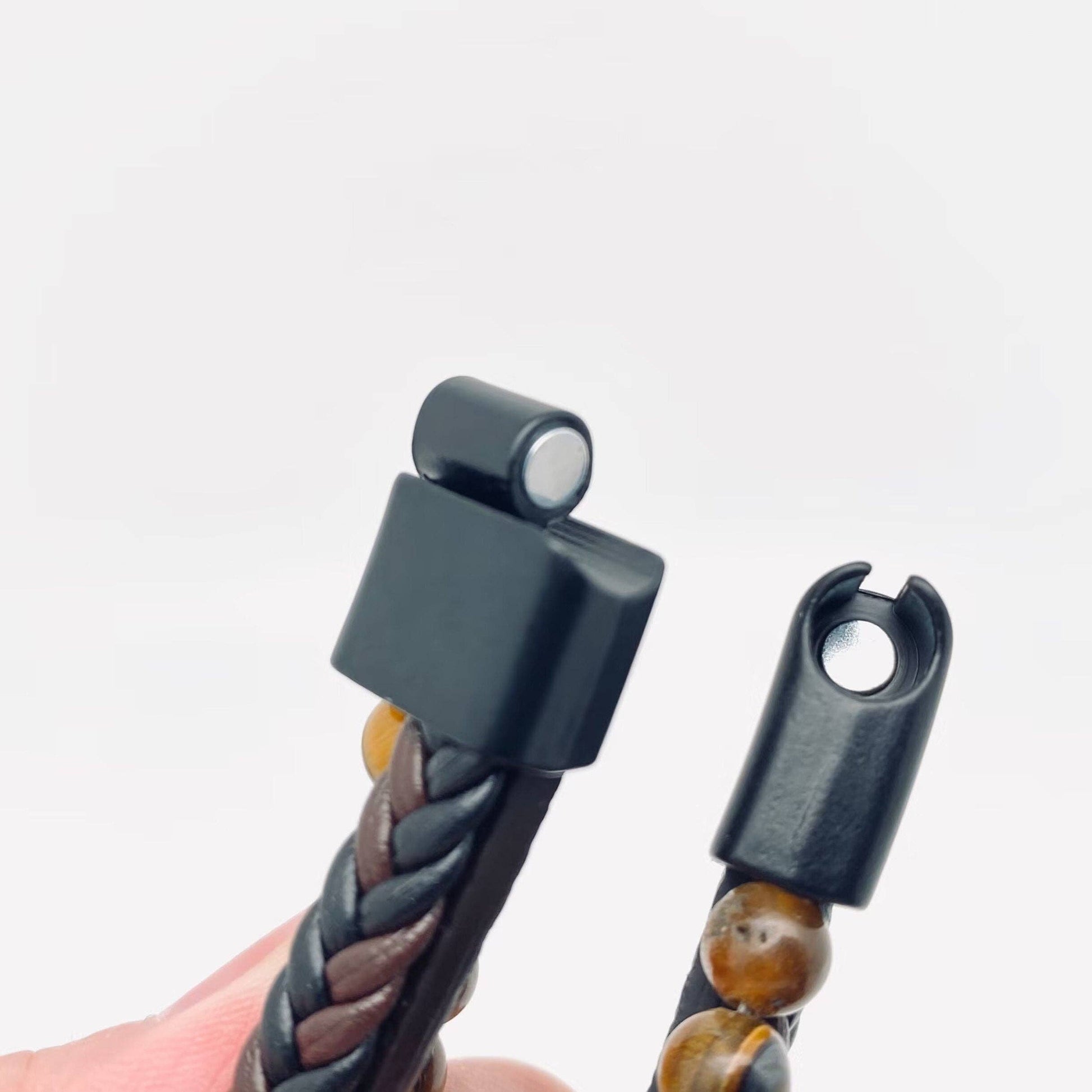 Crafted for the modern man who values both style and substance, this leather bracelet brings together the rugged appeal of genuine Tiger's Eye beads with the timeless symbolism of a Tree of Life charm. Tiger's Eye stone is celebrated for its grounding energy and protective vibes, while the Tree of Life represents growth, strength, and our connection to nature. The supple leather strap pairs perfectly with a secure magnetic buckle that makes getting dressed effortless. Whether you're wearing it daily or gifting it to someone special, this piece strikes that sweet spot between meaningful and undeniably cool. Material: Tiger's Eye stone, PU Leather, 316L Stainless Steel. Length: 210MM / 8.26 inches. Width: 14MM / 0.55 inches.