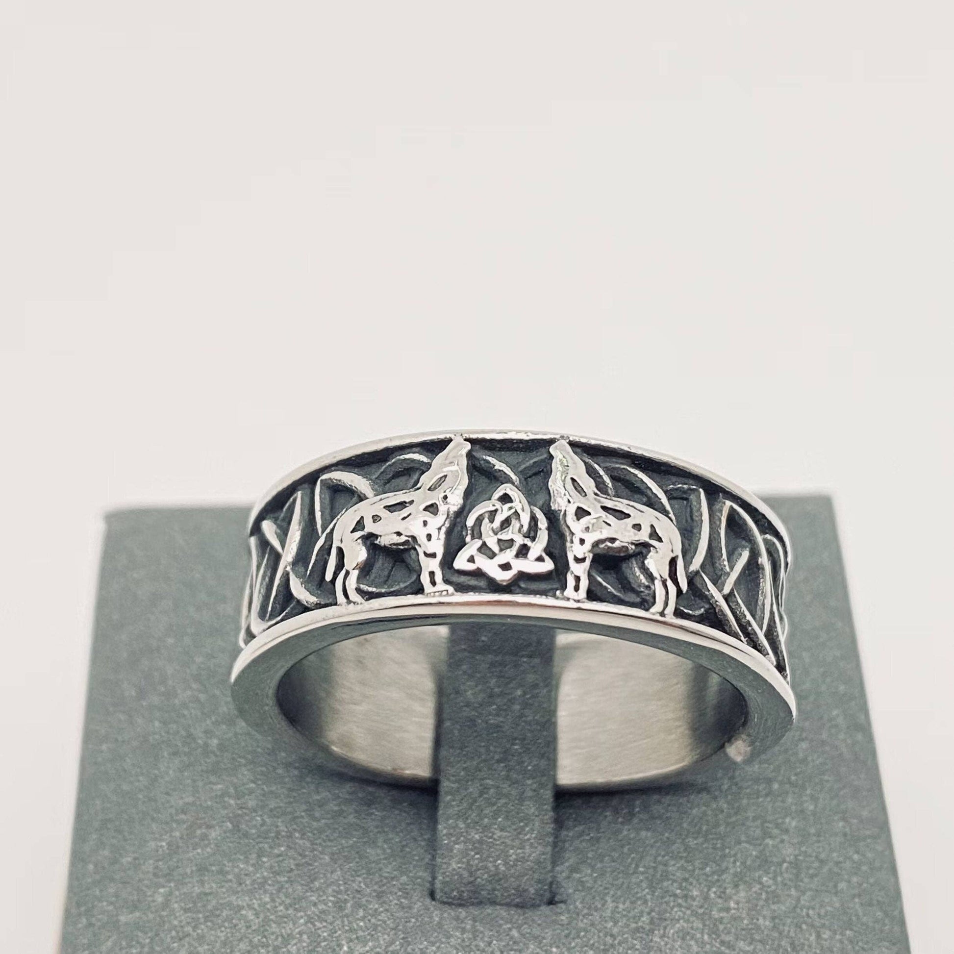 Unleash your inner warrior with this striking Viking Double Wolf Pattern Stainless Steel Ring. Crafted from premium titanium steel, this bold piece features an intricate dual wolf design that captures the spirit of Norse mythology and ancient strength. The high-polish surface gleams with an impressive shine, making it an eye-catching statement piece for any occasion. Built to last, this ring is made from lead-free, hypoallergenic stainless steel that's gentle on your skin and tough enough for everyday wear. Whether you're channeling your inner Viking or simply love the fierce aesthetic, this ring delivers serious style without the serious price tag. Available in multiple sizes to ensure the perfect fit. The ultimate gift for the man who dares to stand out from the crowd.