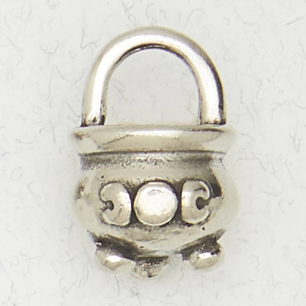 WICCA - The Wiccan Collection - THE WITCH'S CAULDRON The Witch's Cauldron is a symbol of the witches’ work. Most often they are made of cast iron and used to burn loose incense on a charcoal disc, to make black salt (used in banishing rituals), for mixing herbs, or to burn petitions (paper with words of power or wishes written on them). In some forms of Wicca and Celtic Mythology the cauldron symbolizes the Goddess Cerridwen. The cauldron also represents the womb (because it holds something) and on an altar it represents the earth because it is a working tool. Witches heal, but they also pursue wisdom and power. Just as the herbs mix in a pot to make a medicine, so the experiences of life mix to create understanding and wisdom. The many personalities of people mix to from a nation, tribe or circle. The nations mix to make our world. Pendants come on 20" Stainless Steel Chain.